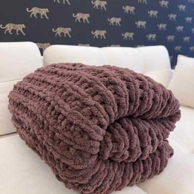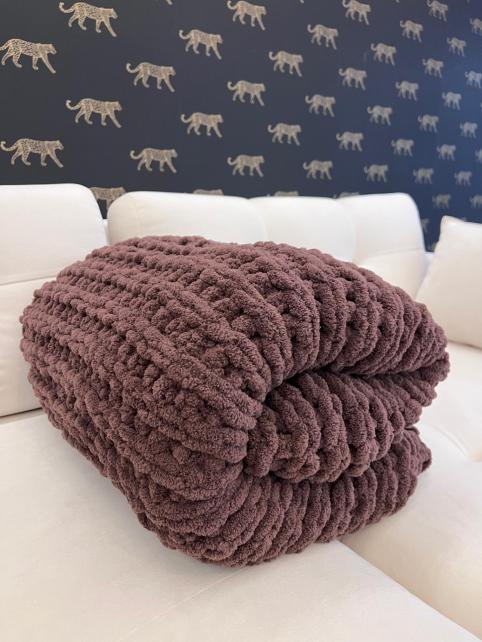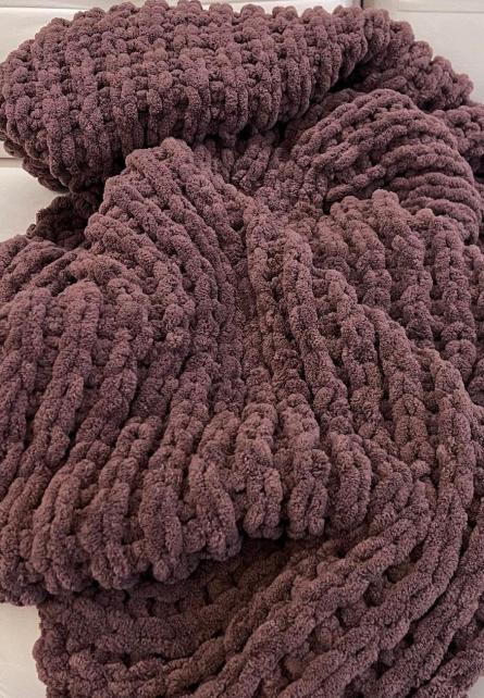 Ručně pletená deka ze silné žinylkové příze. Deka je měkká, heboučká a hřejivá. Skvěle doplní interiér obytného prostoru, ložnice, dětského pokoje, je ideální i do kočárku.