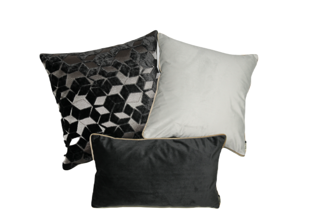 Dekorační povlak na polštář se šedým sametovým vzorem. Je vyroben z nejkvalitnějších látek předních světových výrobců a jistě se stane ozdobou vašeho bydlení, ať už v obývacím pokoji, ložnici nebo terase.