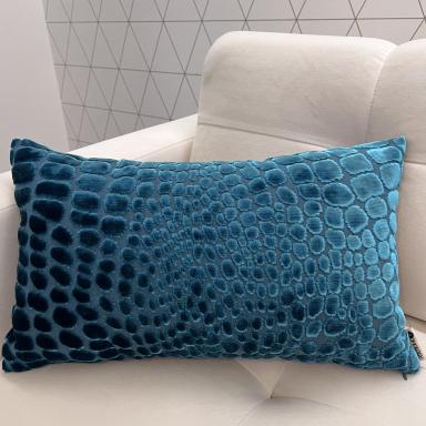 Dekorační povlak na polštář v modré barvě. Je vyroben z nejkvalitnějších látek předních světových výrobců a jistě se stane ozdobou vašeho bydlení, ať už v obývacím pokoji, ložnici nebo terase.