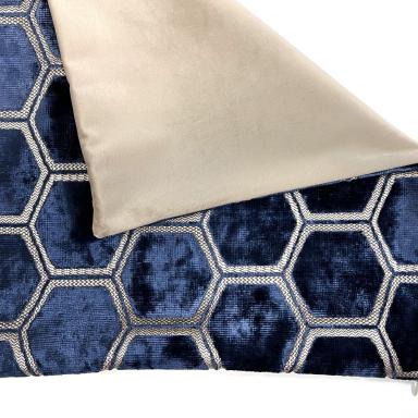 Dekorační povlak na polštář se vzorem hexagon, odstín modré barvy Midnight Velvet. Je vyroben z nejkvalitnějších látek předních světových výrobců a jistě se stane ozdobou vašeho bydlení, ať už v obývacím pokoji, ložnici nebo terase.