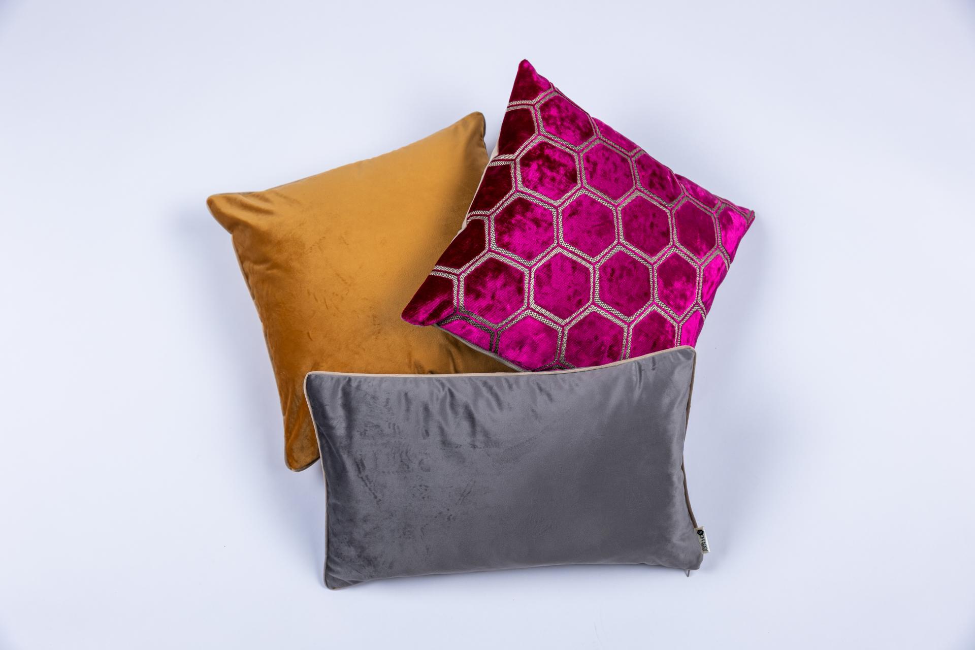 Set 3 povlaků na polštáře HEXAGON - růžový, zlatý, šedý