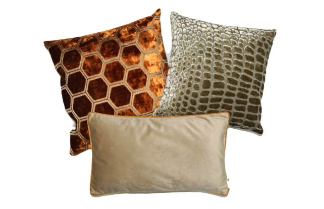 Set 3 povlaků na polštáře HEXAGON - sienna, béžový vzor, béžový uni se zlatou paspulkou