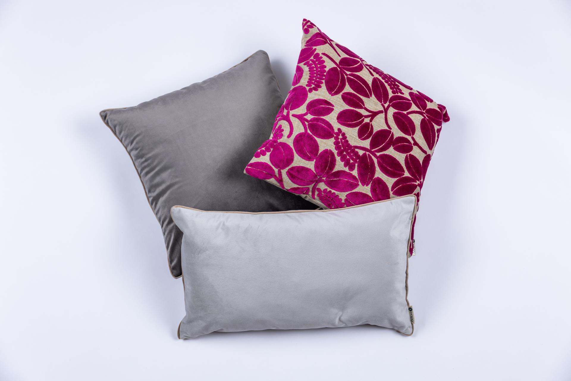Set 3 povlaků na polštáře KVĚTY - růžový, šedý, světle šedý