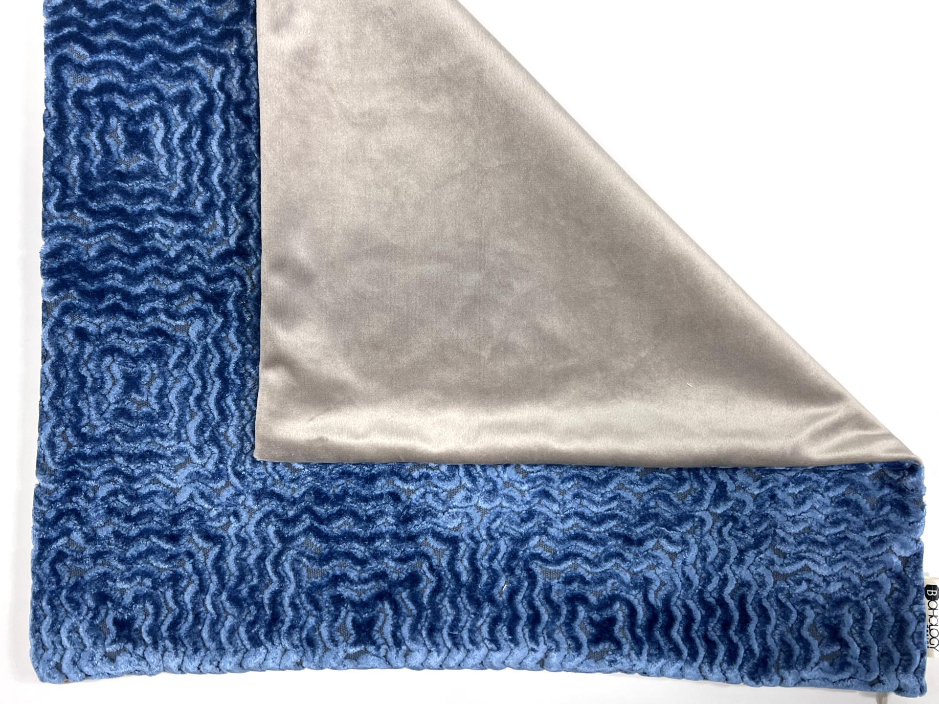 Dekorační povlak na polštář se sametovým modrým vzorem. Je vyroben z nejkvalitnějších látek předních světových výrobců a jistě se stane ozdobou vašeho bydlení, ať už v obývacím pokoji, ložnici nebo terase.