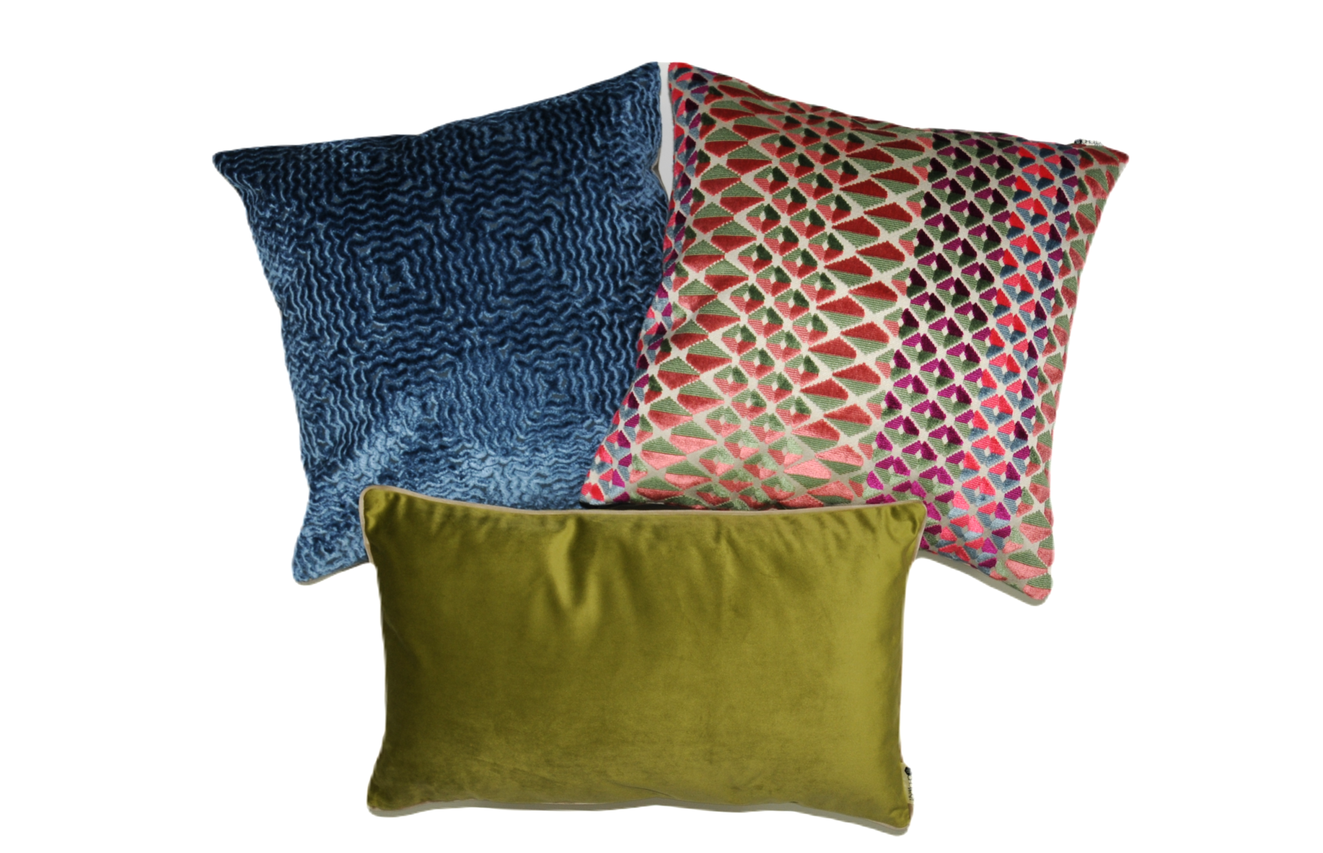 Dekorační povlak na polštář se sametovým vzorem v barvách zelená, modrá, růžová. Je vyroben z nejkvalitnějších látek předních světových výrobců a jistě se stane ozdobou vašeho bydlení, ať už v obývacím pokoji, ložnici nebo terase.