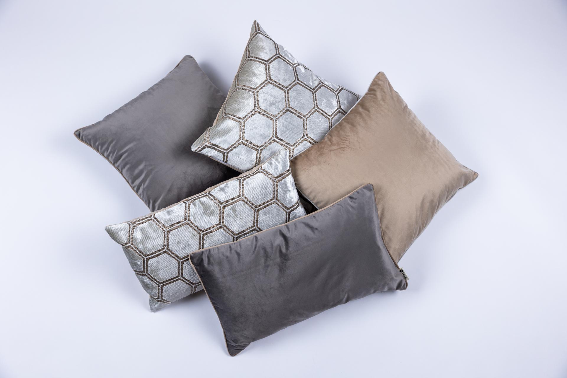 Dekorační povlak na polštář ve stříbrné barvě, vzor hexagon. Je vyroben z nejkvalitnějších látek předních světových výrobců a jistě se stane ozdobou vašeho bydlení, ať už v obývacím pokoji, ložnici nebo terase.