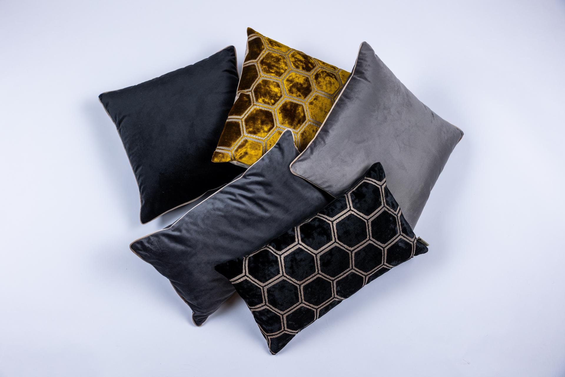 Dekorační povlak na polštář v černé barvě, vzor hexagon. Je vyroben z nejkvalitnějších látek předních světových výrobců a jistě se stane ozdobou vašeho bydlení, ať už v obývacím pokoji, ložnici nebo terase.