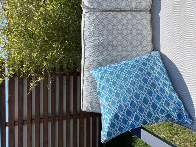 Venkovní povlak na polštář vyrobený z látky, která zvládne i malý deštík a nemusíte tak polštáře neustále uklízet. Vybíráme látky z těch nejnovějších kolekcí, a tak bude tento polštář moderní ozdobou vašeho balkonu, terasy či zahrady.